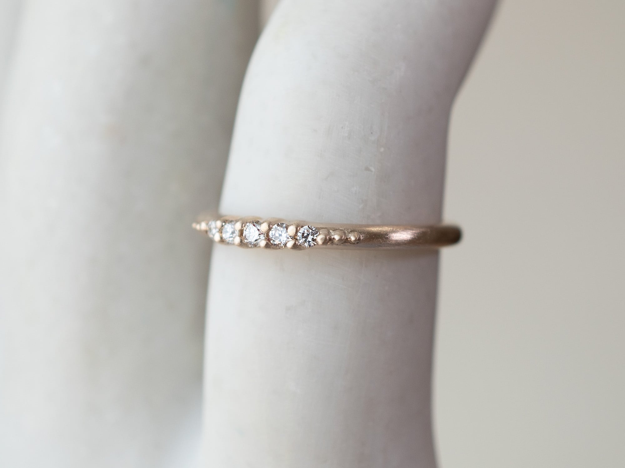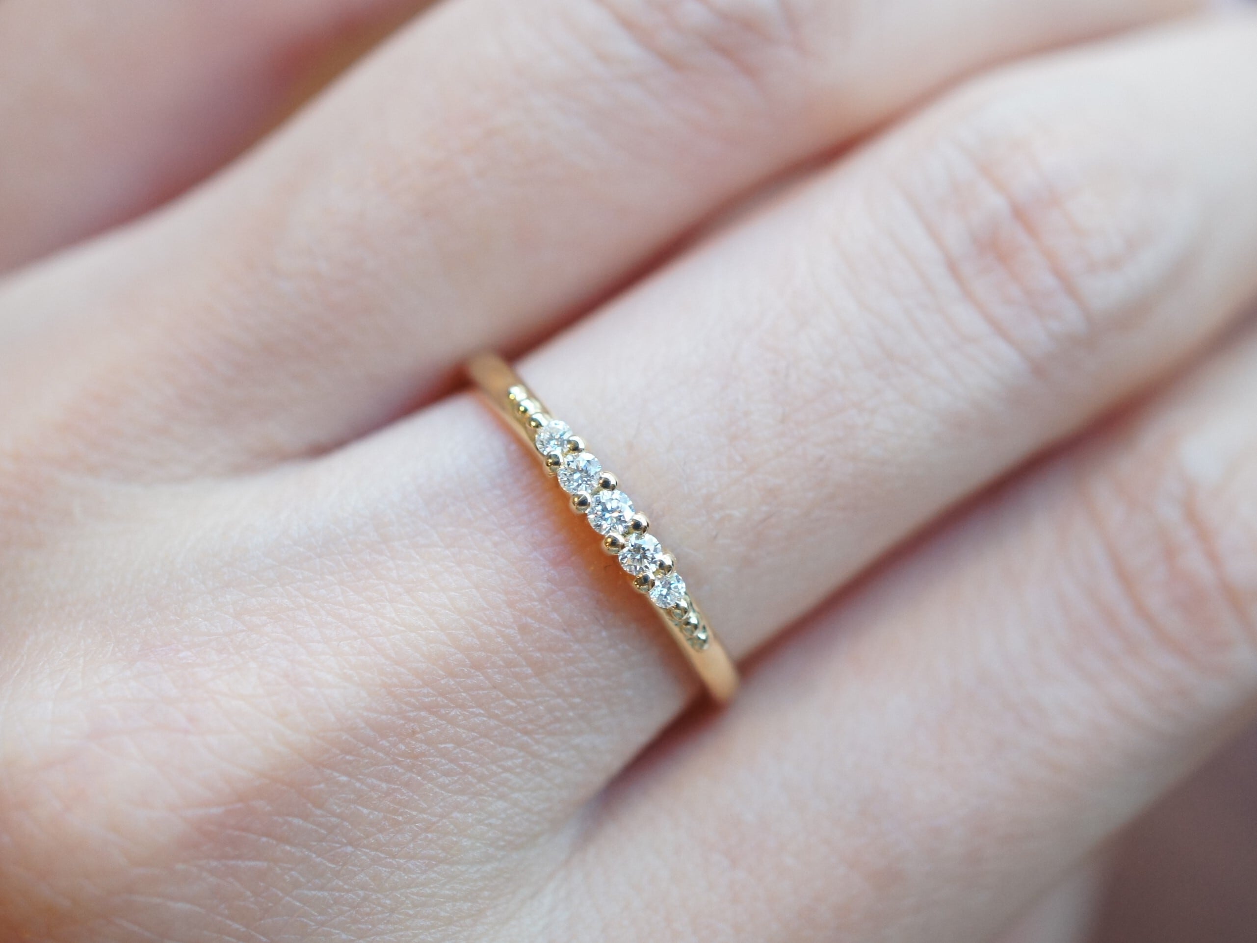 シンプルながらも洗練された美しさを追求した、ダイヤモンドを5石並べた繊細なデザインのリング。