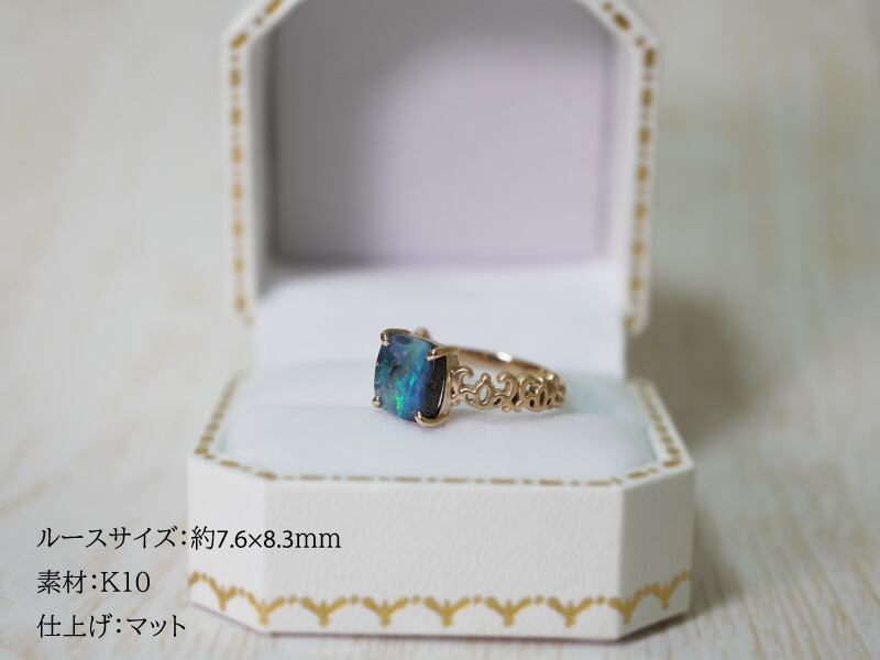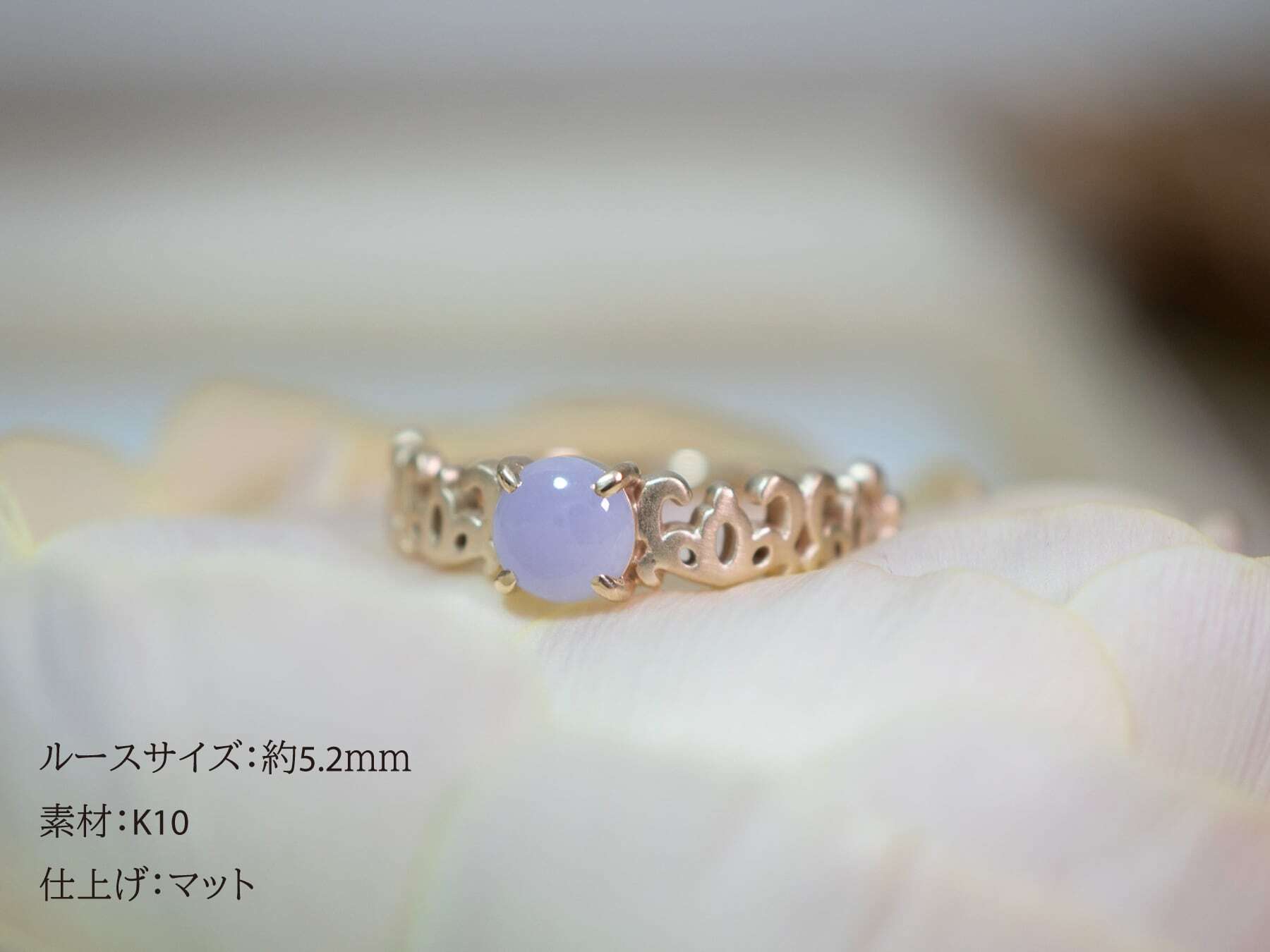 1/2周をぐるりと囲むように施されたレース模様は、ジュエリーで刺繍を施したような繊細さと華やかさを演出します。
