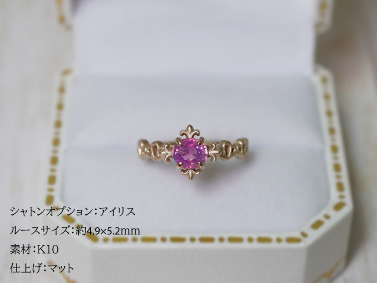 日本ならではの美意識を感じさせるこのリングは、繊細な作りながらも存在感があり、日常使いにもぴったりです。
