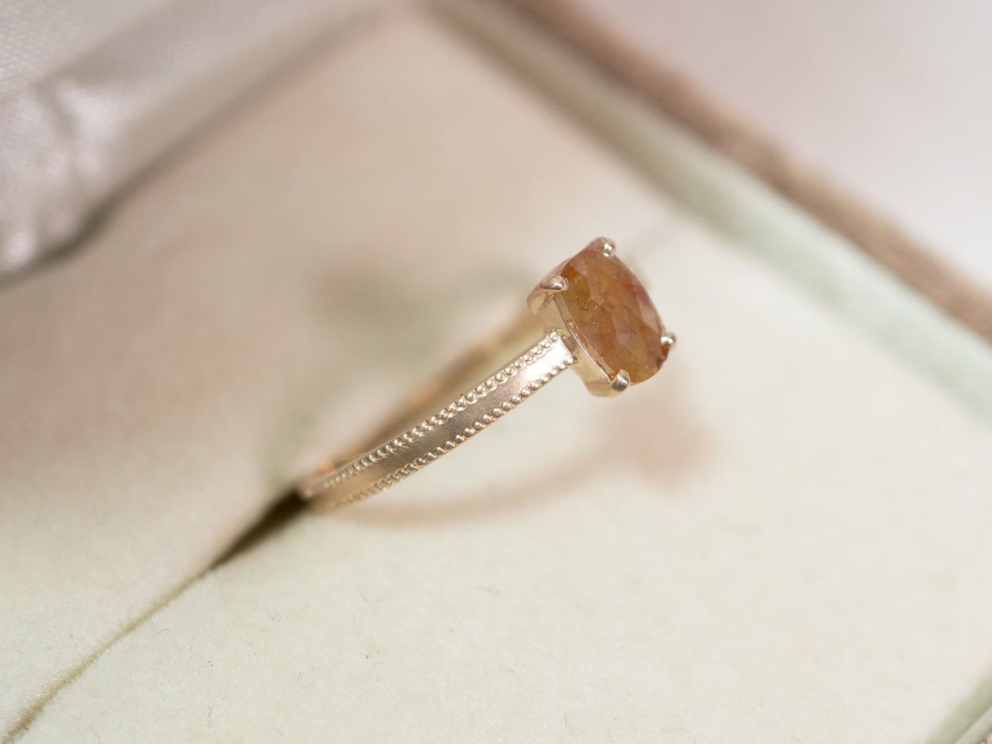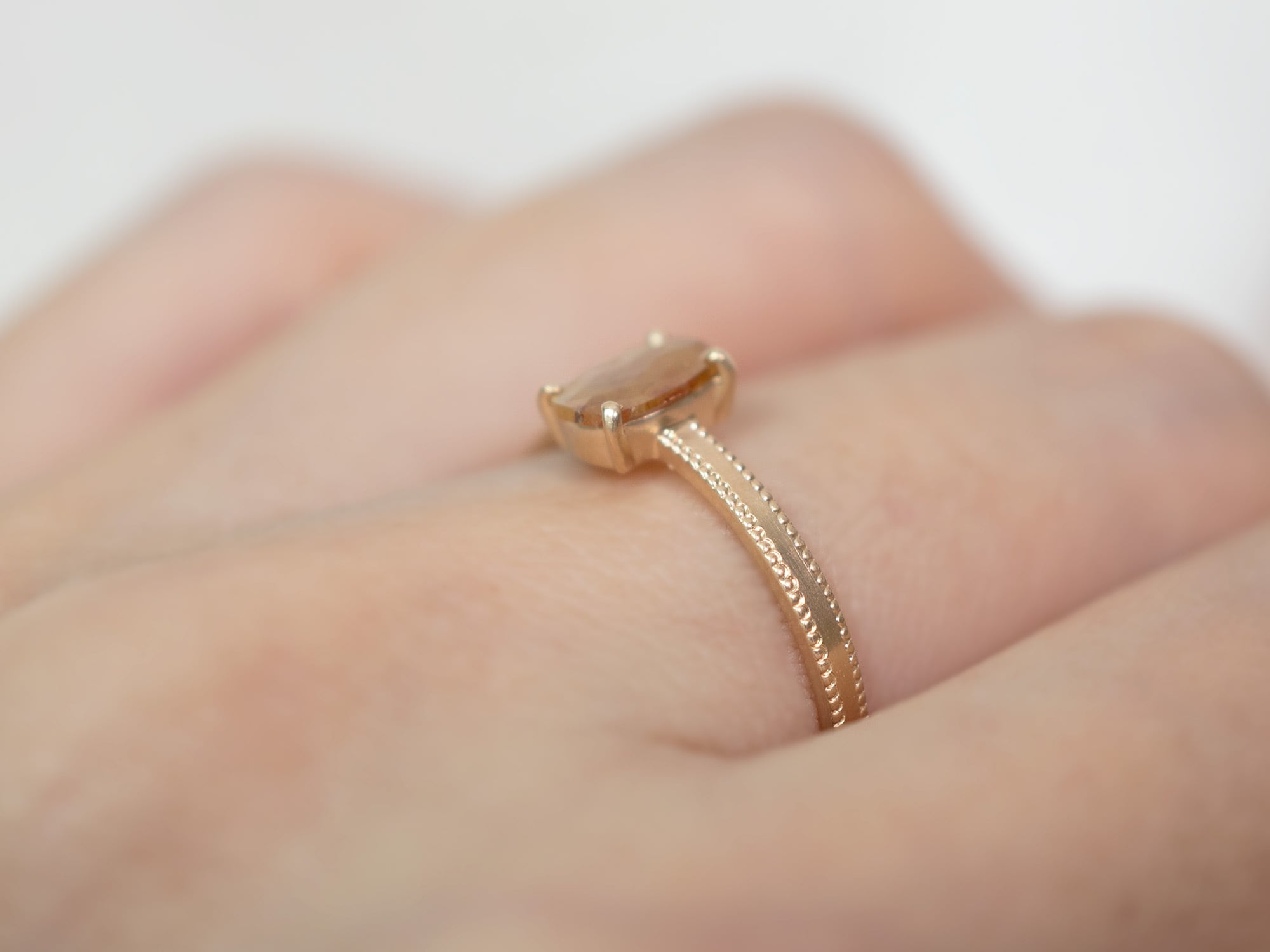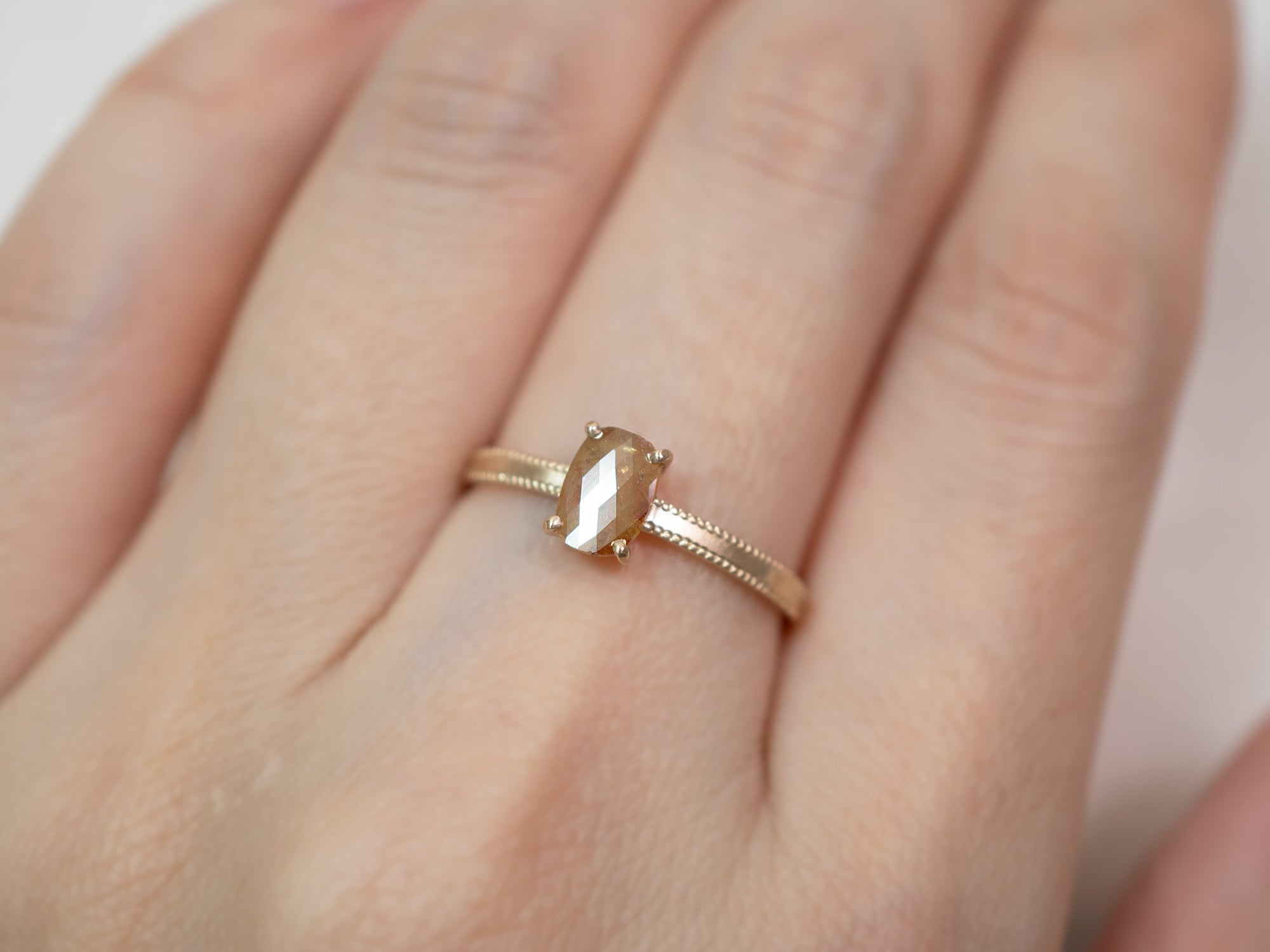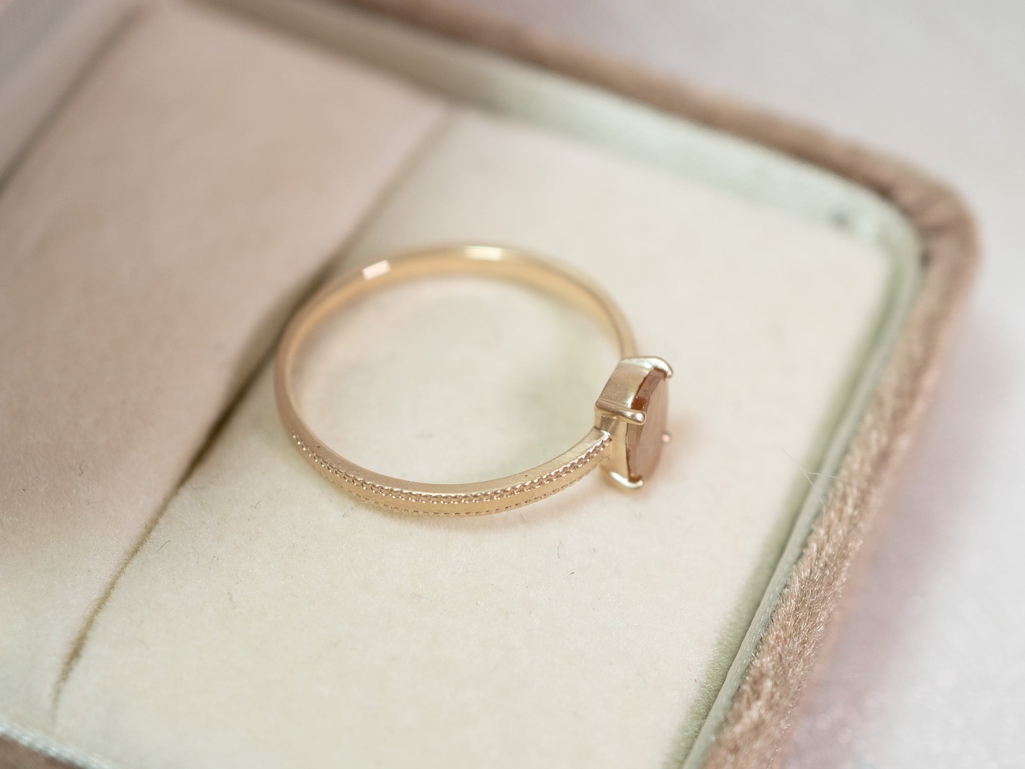 キャラメルブラウンダイヤモンド×ミル打ちリング